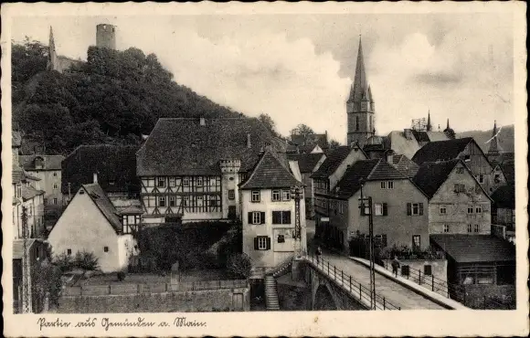 Ak Gemünden am Main Unterfranken, Teilansicht