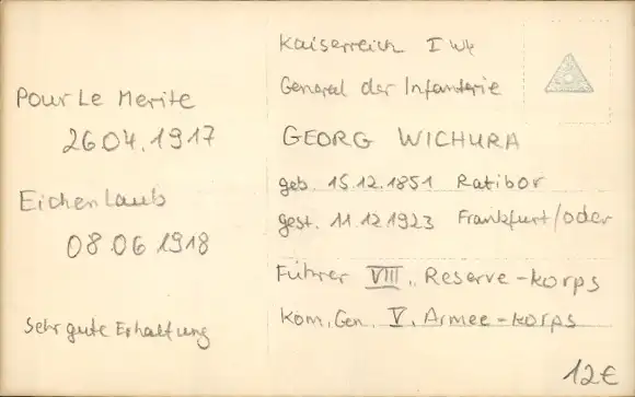 Ak General Georg von Wichura, Kaiserreich, NPG 5158