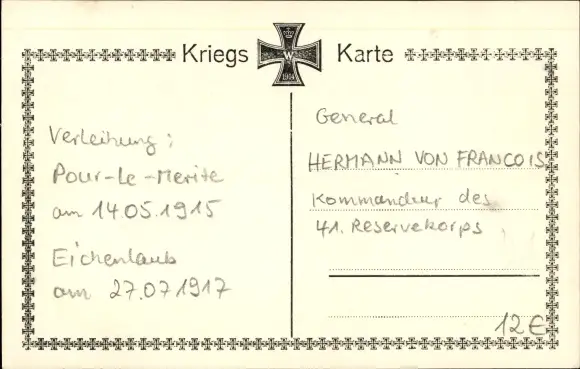 Ak General Hermann von Francois, Oberbefehlshaber 8. Armee, Uniform, Pour le Merite Orden