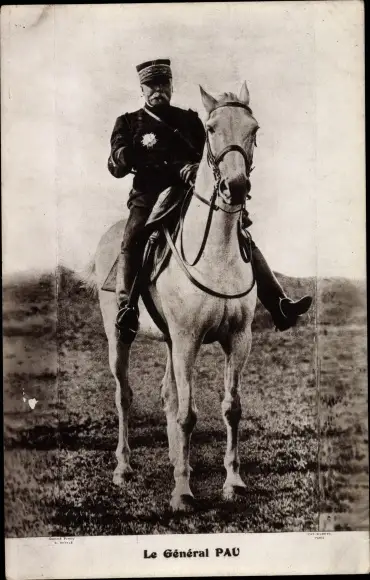 Ak General Pau zu Pferde, Portrait, Uniform, Heerführer