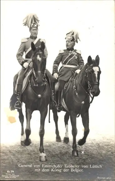 Ak General von Emmich, der Eroberer von Lüttich mit König Albert I von Belgien