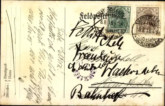 Zustand, siehe Scan, gelaufen, 1918 - ca 14 cm X 9 cm