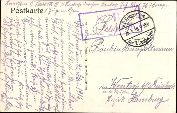 Zustand, siehe Scan, gelaufen, 1916 - ca 9 cm X 14 cm