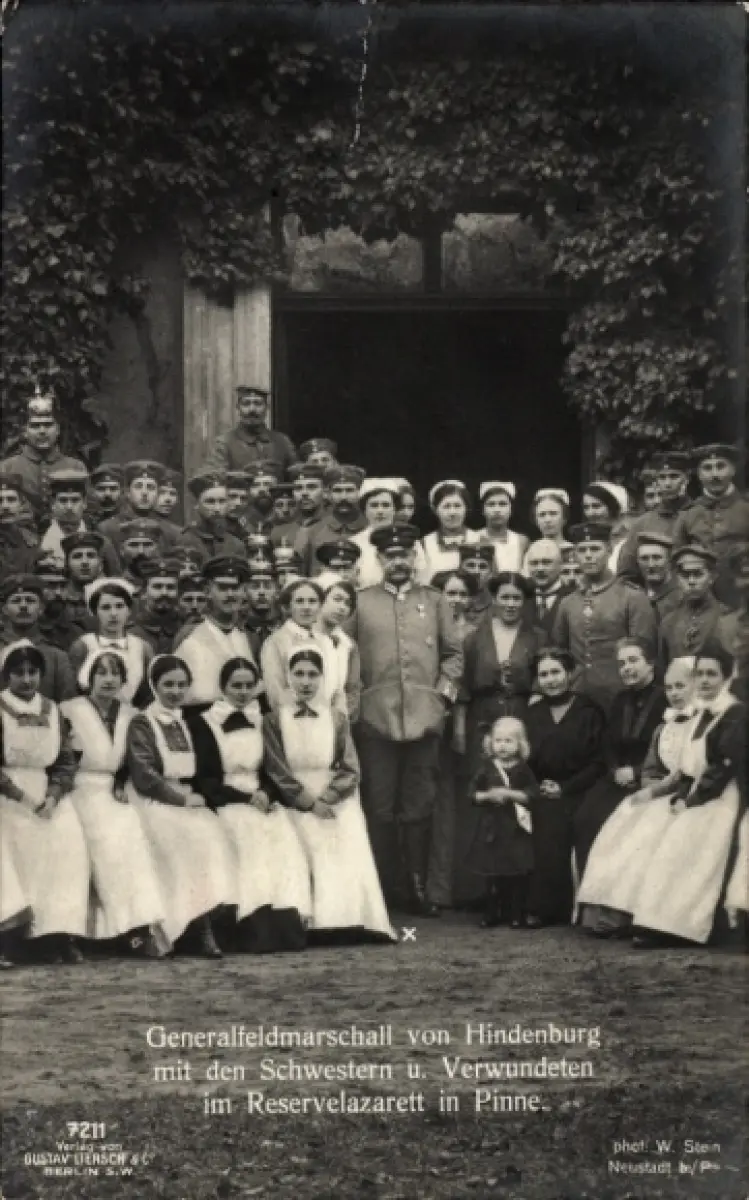 Ak Generalfeldmarschall Paul von Hindenburg, Reservelazarett Pinne, Schwestern, Verwundete