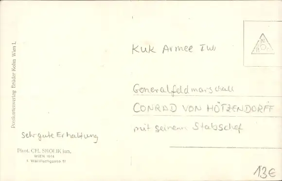 Ak Generalstabschef Conrad von Hötzendorf mit seinem Stabschef, Kuk Armee, 1. WK
