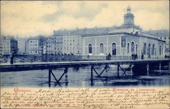 Ak Genève Genf Schweiz, Batiment de l'electricite, Brücke