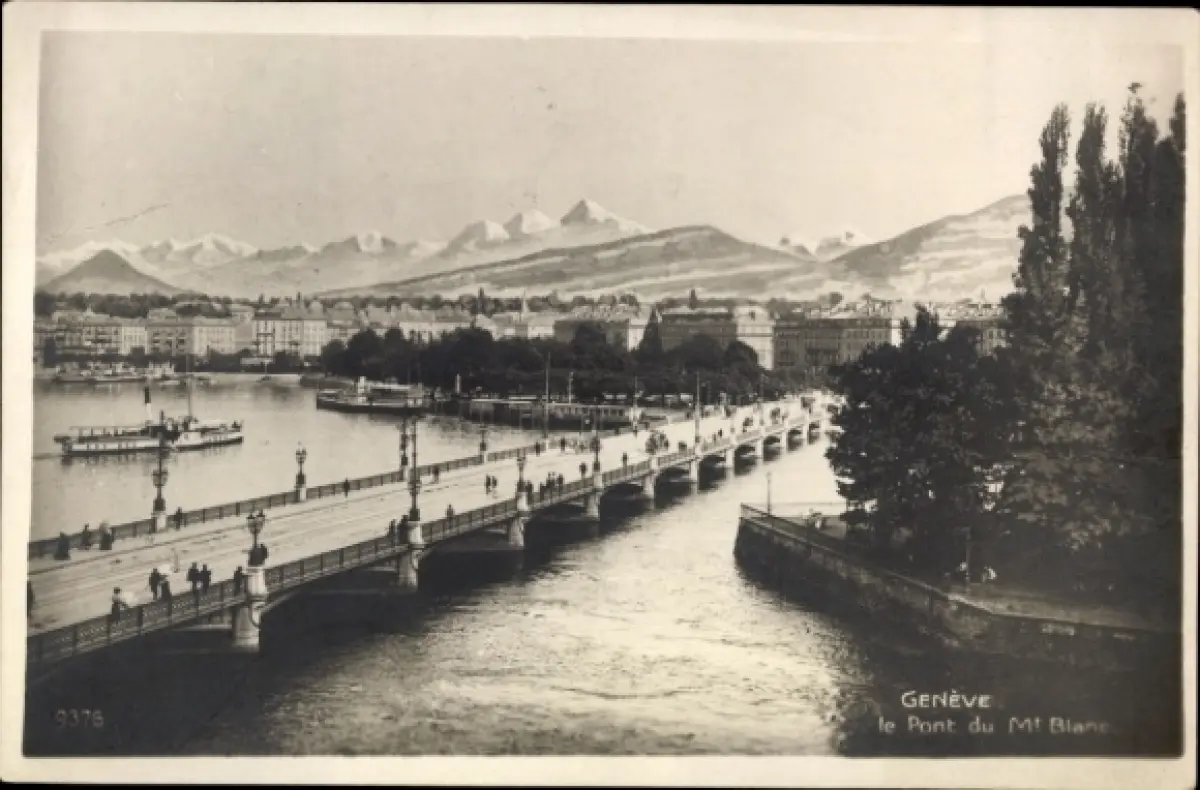 Ak Genève Genf Schweiz, Brücke, Stadtansicht, Berge im Hintergrund
