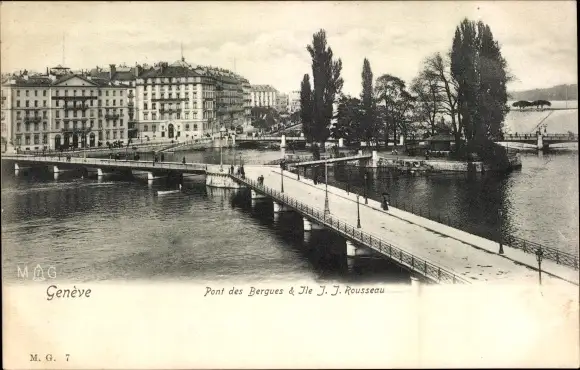 Ak Genève Genf Schweiz, Brücke von Bergues & Ile J. J. Rousseau