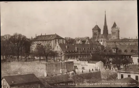 Ak Genève Genf Schweiz, Cathedrale St. Pierre et College de Calvin