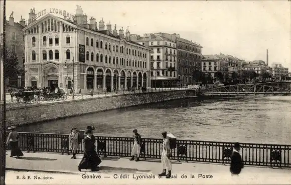 Ak Genève Genf Schweiz, Crédit Lyonnais und Quai de la Poste