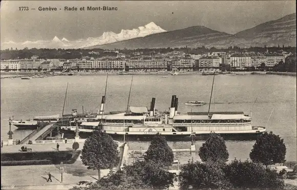 Ak Genève Genf Schweiz, Dampfschiff "La Suisse" am Anleger, Mont Blanc