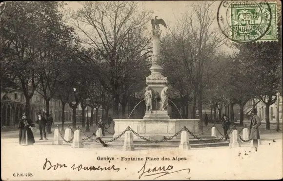 Ak Genève Genf Schweiz, Fontaine Place les Alpes