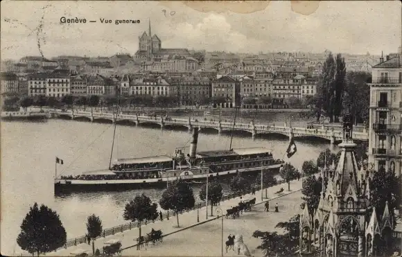 Ak Genève Genf Schweiz, Gesamtansicht, Salondampfer