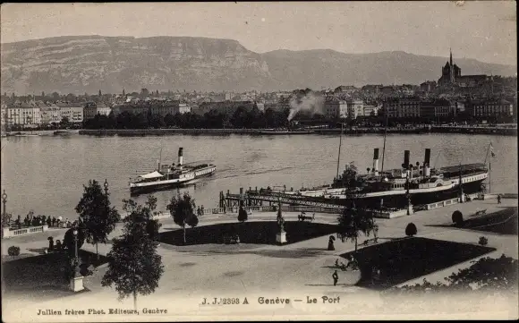 Ak Genève Genf Schweiz, Hafen, Dampfer