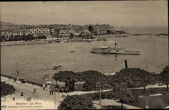 Ak Genève Genf Schweiz, Hafen, Dampfer