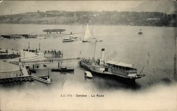 Ak Genève Genf Schweiz, Hafen, Dampfer