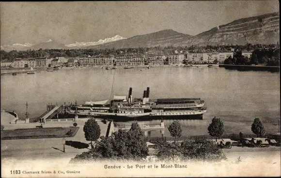 Ak Genève Genf Schweiz, Hafen, Salondampfer, Stadt, Mont Blanc