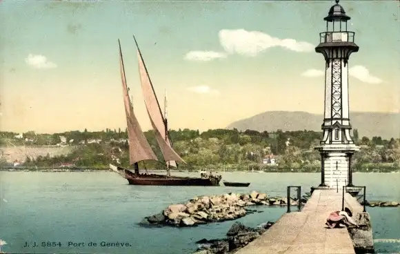 Ak Genève Genf Schweiz, Hafen, Segelboot