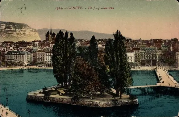 Ak Genève Genf Schweiz, Ile J. J. Rousseau
