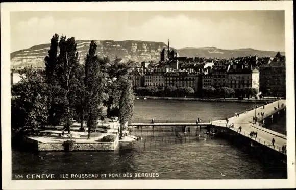 Ak Genève Genf Schweiz, Ile Rousseau, Pont des Bergues