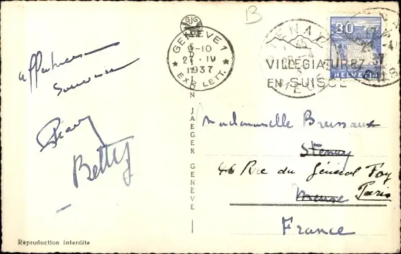 Zustand, siehe Scan, gelaufen, 1937 - ca 14 cm X 9 cm