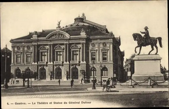 Ak Genève Genf Schweiz, Le Theatre, Statue du General Dufour