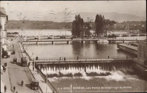 Ak Genève Genf Schweiz, Les Ponts et le barrage du Rhone