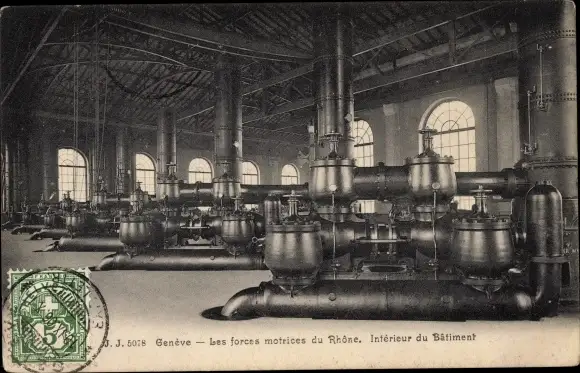 Ak Genève Genf Schweiz, Les forces motrices du Rhone, Interieur de Batiment