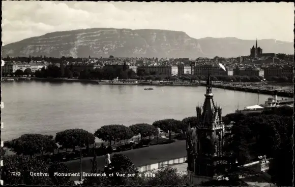 Ak Genève Genf Schweiz, Monument Brunswick, Vue sur la Ville