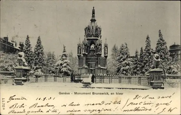 Ak Genève Genf Schweiz, Monument Brunswick, Winter