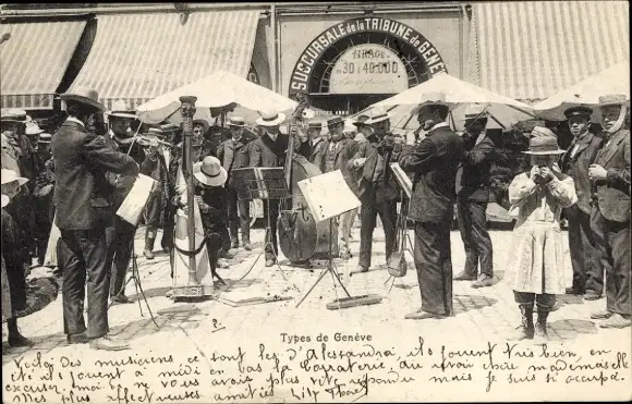 Ak Genève Genf Schweiz, Musikkapelle am Markt, Stadttypen