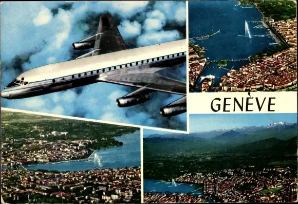 Ak Genève Genf Schweiz, Panorama der Stadt, Passagierflugzeug