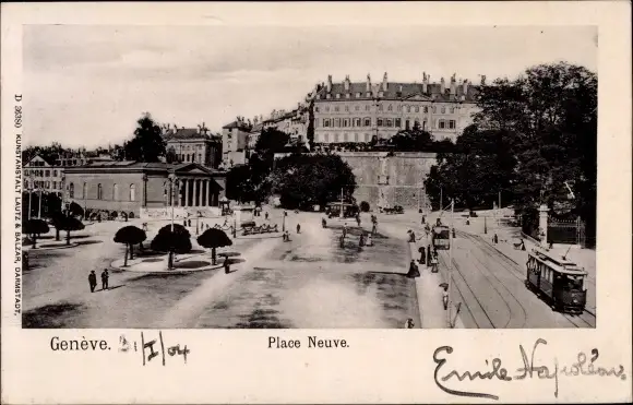 Ak Genève Genf Schweiz, Place Neuve, Straßenbahn