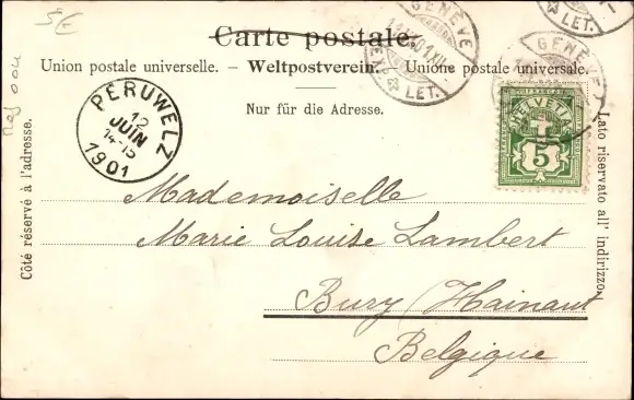Zustand, siehe Scan, gelaufen, 1901 - ca 14 cm X 9 cm