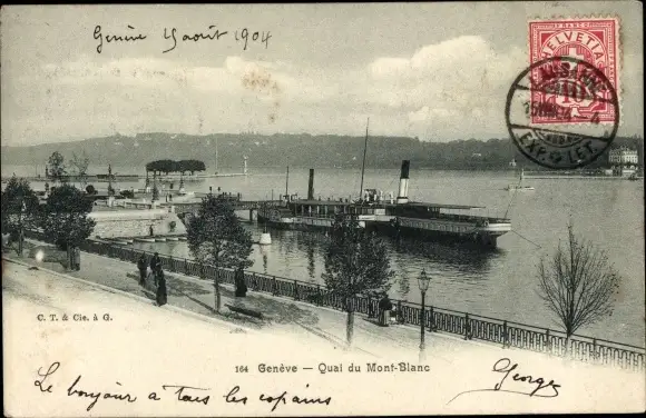 Ak Genève Genf Schweiz, Quai du Mont Blanc, Dampfer am Anleger