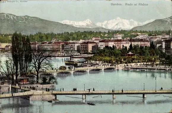 Ak Genève Genf Schweiz, Rade, Rhone, Brücken