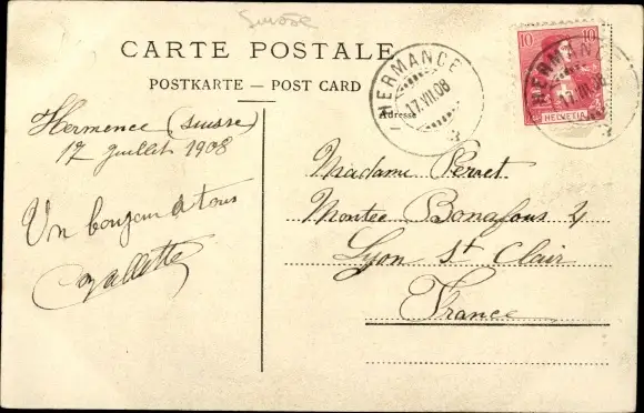 Zustand, siehe Scan, gelaufen, 1908 - ca 14 cm X 9 cm