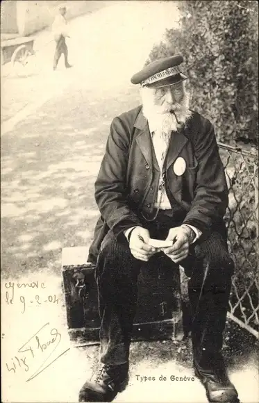 Ak Genève Genf Schweiz, Stadttyp mit Tabakpfeife
