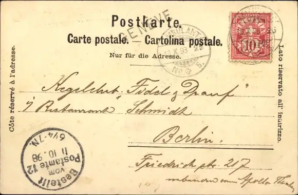 Zustand, siehe Scan, gelaufen, 1898 - ca 14 cm X 9 cm