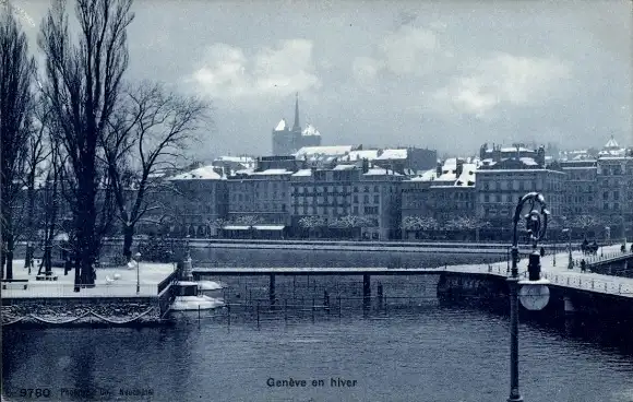 Ak Genève Genf Schweiz, Teilansicht, Winter