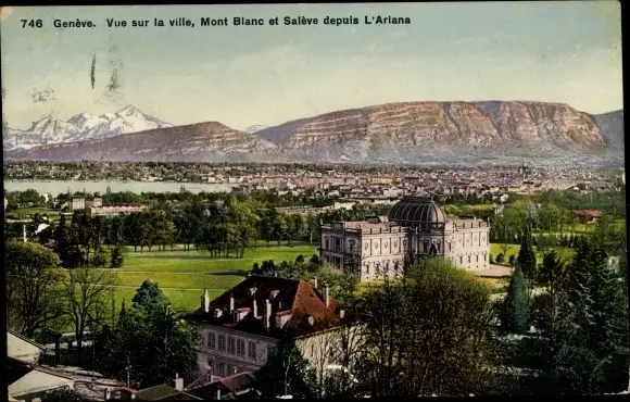 Ak Genève Genf Schweiz, Vue sur la ville, Mont Blanc et Salève depuis L'Ariana