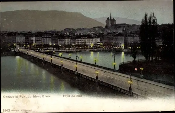 Ak Genève Genf Schweiz, ville et Pont du Mont Blanc, Effet de nuit