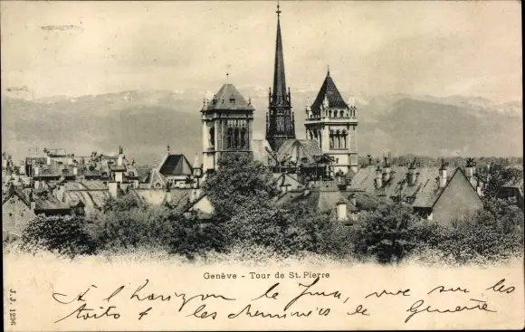 Ak Genève Genf Stadt, Blick zum Turm von St. Pierre Kirche