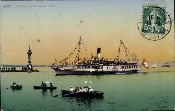 Ak Genève Genf Stadt, Entrée en rade, Salondampfer Italie, Signalturm