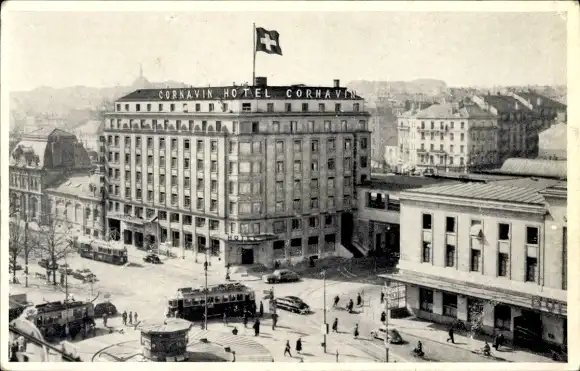 Ak Genève Genf Stadt, Hotel Cornavin, Straßenbahn