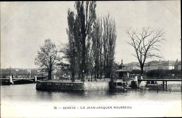 Ak Genève Genf Stadt, Ile Jean Jacques Rousseau
