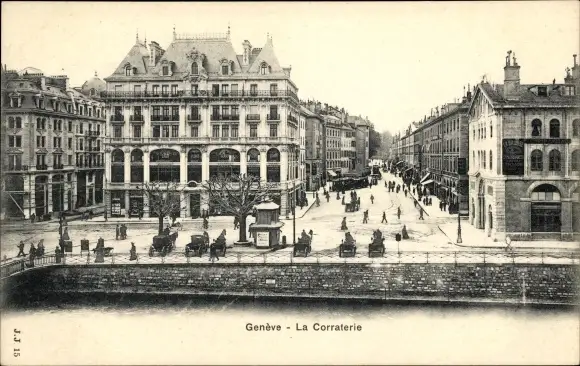 Ak Genève Genf Stadt, La Corraterie, des carrosses et magasins