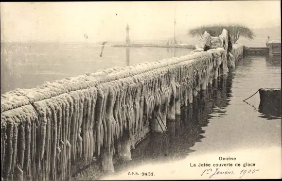 Ak Genève Genf Stadt, La Jetée couverte de glace, Frost am Hafen