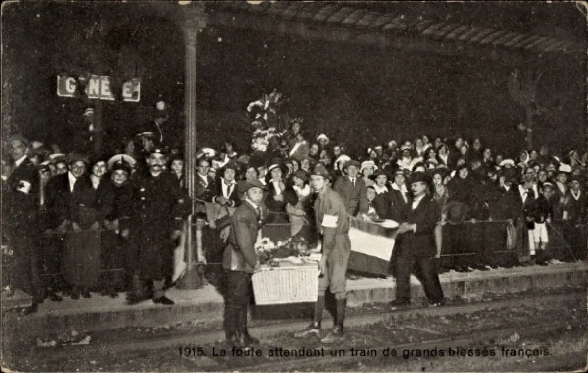 Ak Genève Genf Stadt, La foule attendant un train de grand blessés francais
