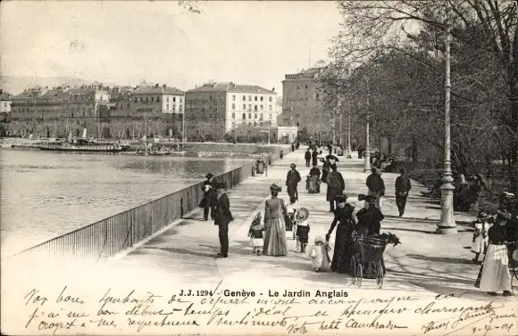Ak Genève Genf Stadt, Le Jardin Anglais, Kinderwagen, Salondampfer